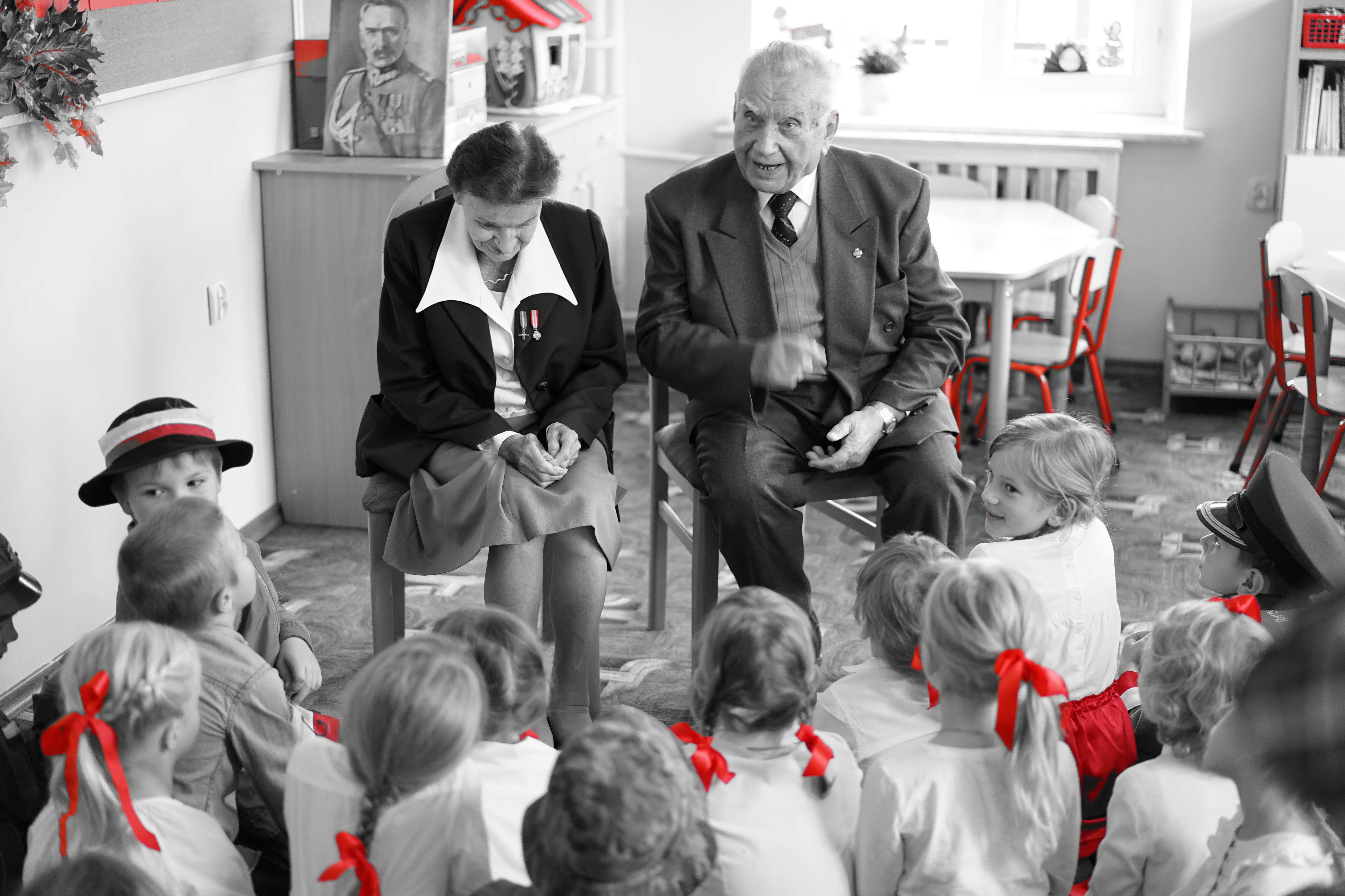 Do naszego przedszkola zawitali niezwykli goście. Uczestnicy Powstania Warszawskiego: sanitariuszka Maria Milbrandt „Marysia” oraz Janusz Maksymowicz „Janosz”. Dzieci miały okazję zapytać Kombatantów, jakie emocje im wtedy towarzyszyły, jak wyglądało życie w czasie II wojny światowej, dlaczego zdecydowali się walczyć. Niezwykłe spotkanie z historią z pewnością pozostanie na długo w pamięci maluchów. Dziękujemy Pani Marii i Panu Januszowi za poświęcony nam czas, cierpliwe odpowiedzi i przepiękne świadectwo miłości do Ojczyzny!