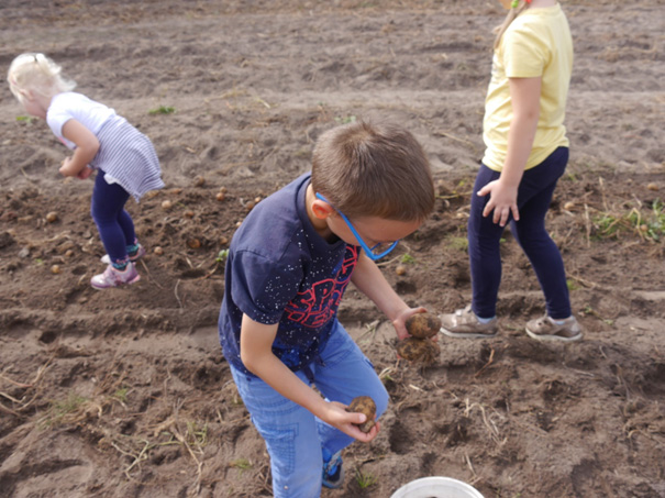 W tym czasie udało nam się wyjechać do gospodarstwa agroturystycznego w Borkach na wykopki ziemniaków. Jakaż to była frajda dla dzieciaków, zbieranie do swoich wiaderek wykopanych ziemniaków, zabawa i spożywanie posiłków na świeżym powietrzu. Tego dnia mieliśmy jeszcze jedną atrakcję. Byliśmy z wizytą w Ochotniczej Straż Pożarnej w Radzyminie. Dzieci mogły z bliska zobaczyć różne pojazdy strażackie oraz wyposażenie samochodu tak bardzo potrzebne by ratować życie ludzi w różnych sytuacjach.